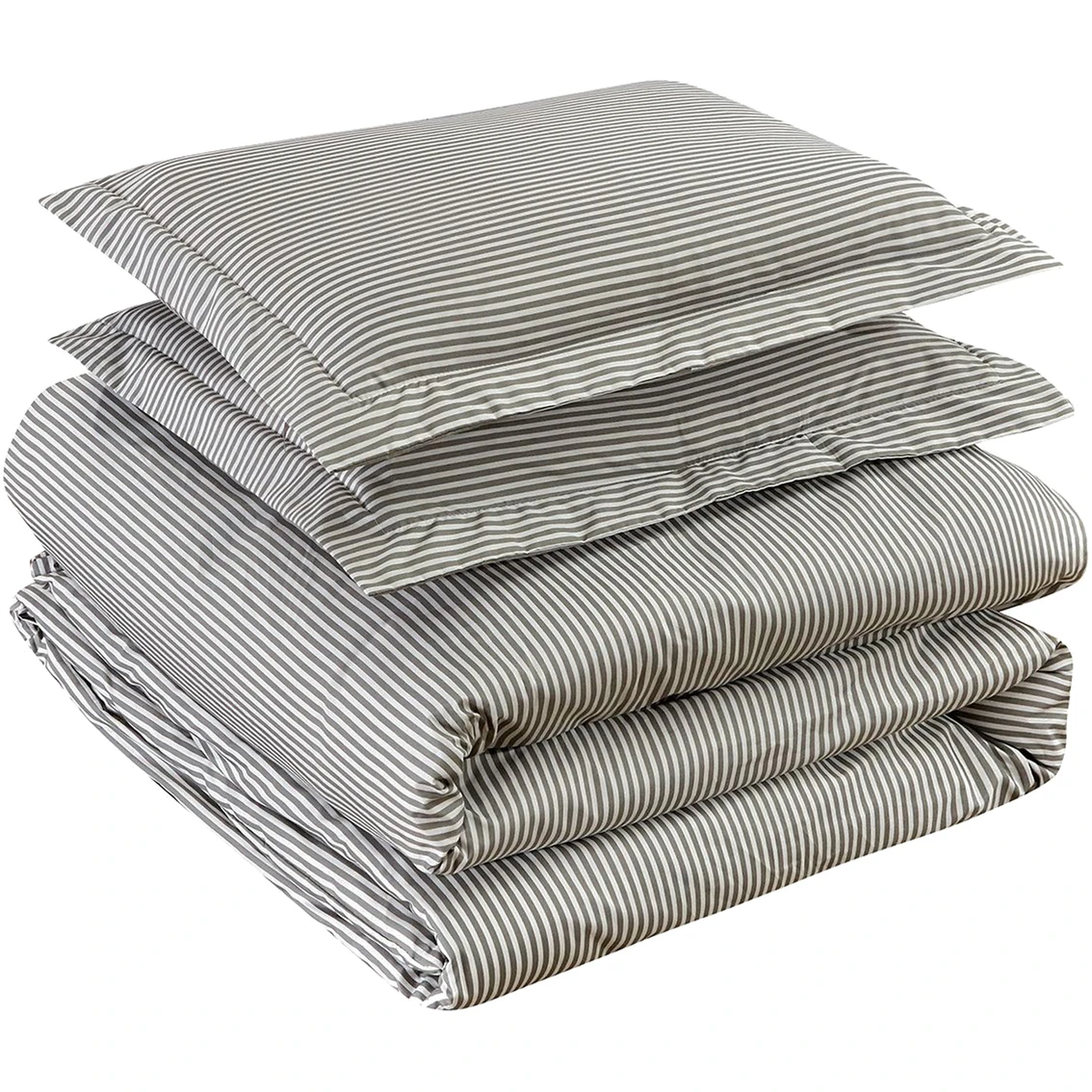 Set incudes 1 duvet cover (it’s like a pillowcase for your existing comforter) with hidden button closure and 2 coordinating shams, each with a framing 2-in. flange. Easy care, machine wash and dry. Model: 1460FQOXF.