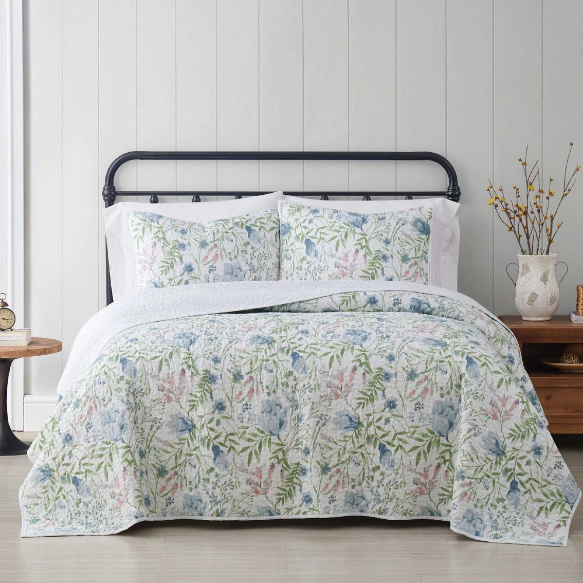 The perfect choice for your room, this Cottage Classics Field Floral Quilt Set features a printed blue floral pattern made from 100% cotton face cloth.