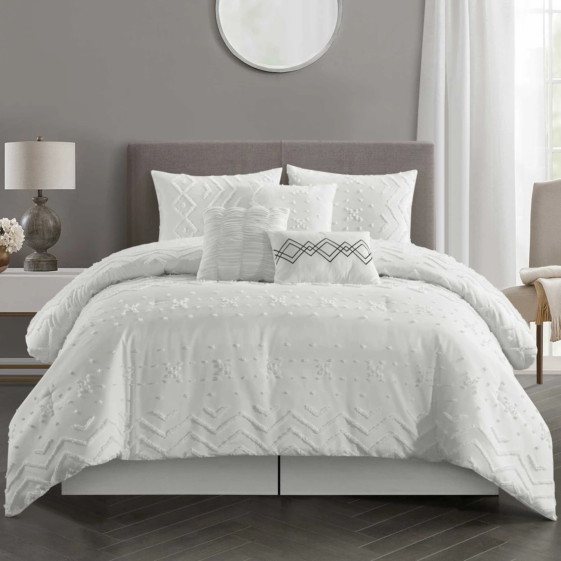 Turn your bedroom into a slumber retreat with the Grand Avenue beautiful and elegant 7-piece comforter set with a horizontal diamond pattern using 3D jacquard clip technique. The look is perfect for casual decors, loft style, dorm room and youth. Constructed of 100% polyester fabric and filling, this bed set comes with 1 comforter, 2 shams, 1 bed skirt and 3 decorative pillows that flaunt excellent workmanship and quality. The complete bed set built to last, this bedding set is made with strict quality control standards and comes with everything you need for a complete bedroom makeover. Made with high strength polyester, this beautiful bedding set can be machine washed and dried on a low tumble setting for easy care. Style: Kasha7.