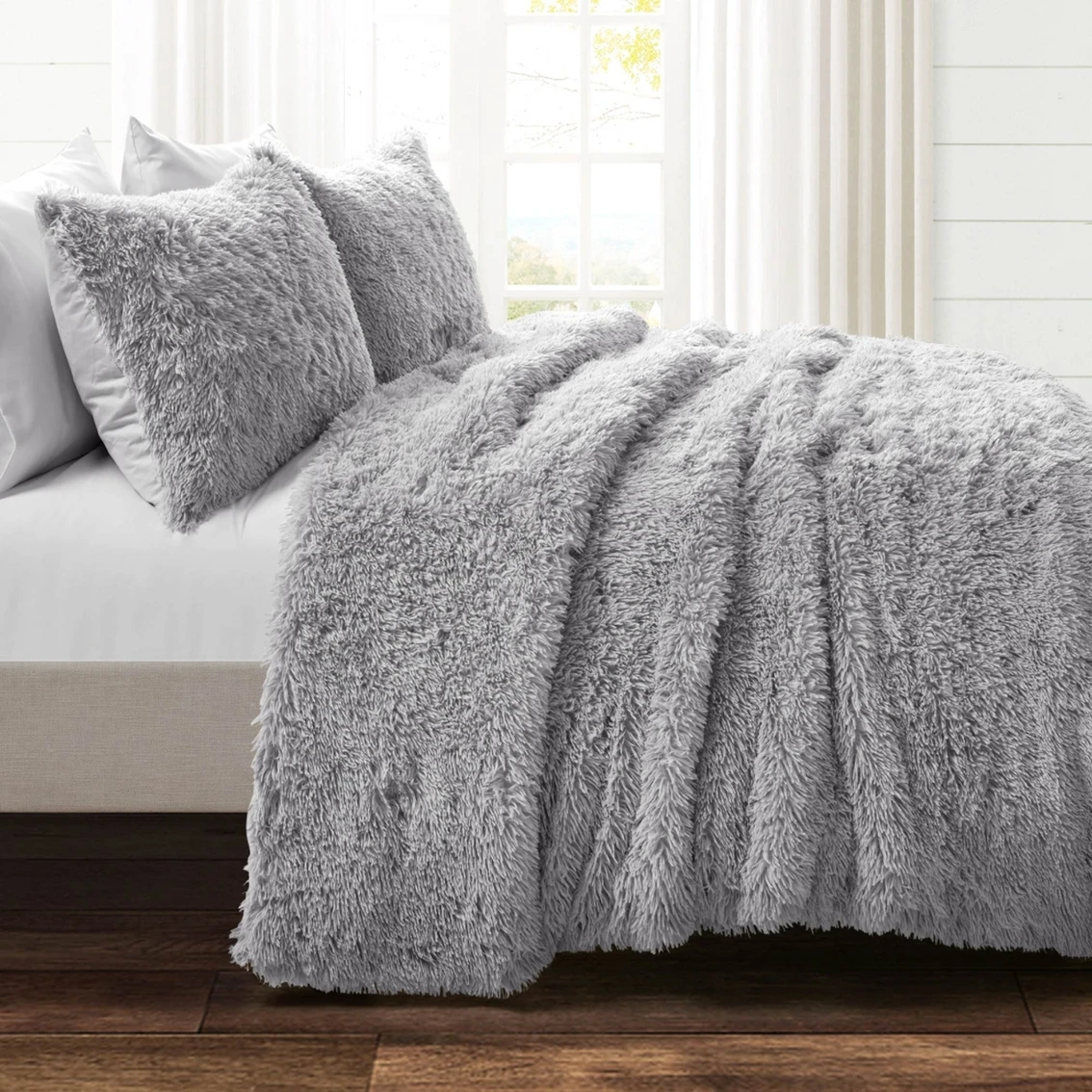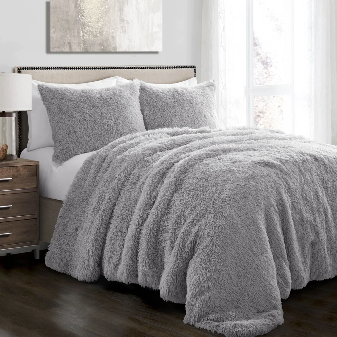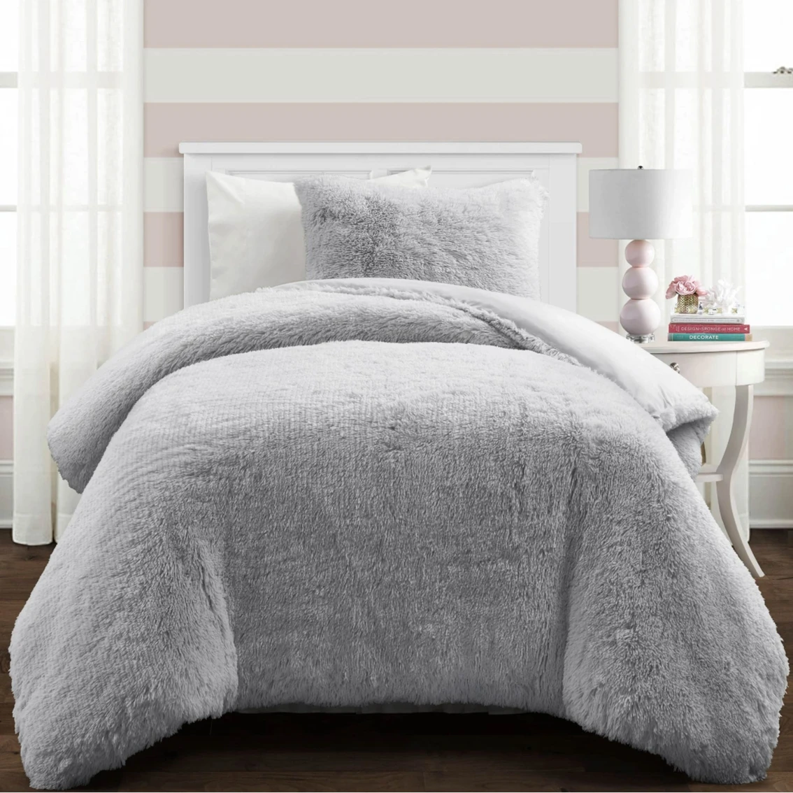This faux fur comforter from Lush Decor is both stylish and oh so soft! Fashion truly meets function with this 3-piece bedding set. Style your master or guest bedroom with beauty and comfort with this lavish set that will keep you warm at night and add beauty to your bedroom. The set includes 1 comforter and 2 shams.