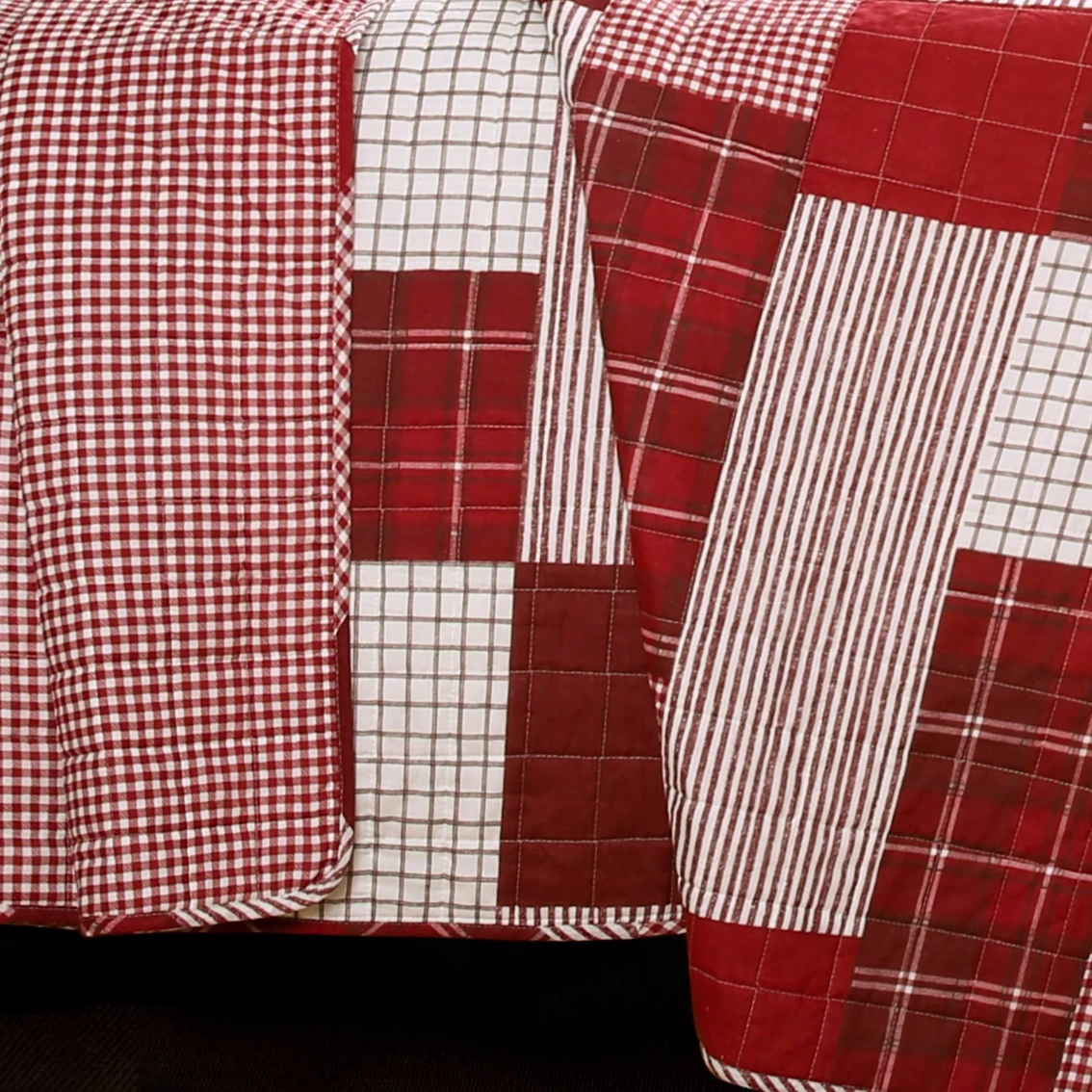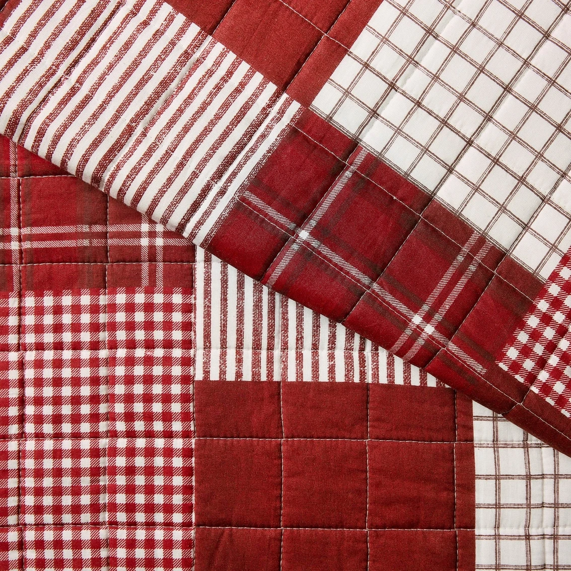 The Lush Decor Greenville quilt set is like having two quilts in one. One side of the quilt and each sham has a bold plaid pattern, while the reverse has a softer, more subdued checker pattern in the same color scheme. Includes a 100% cotton quilt and two matching shams. Model: 16T003164.