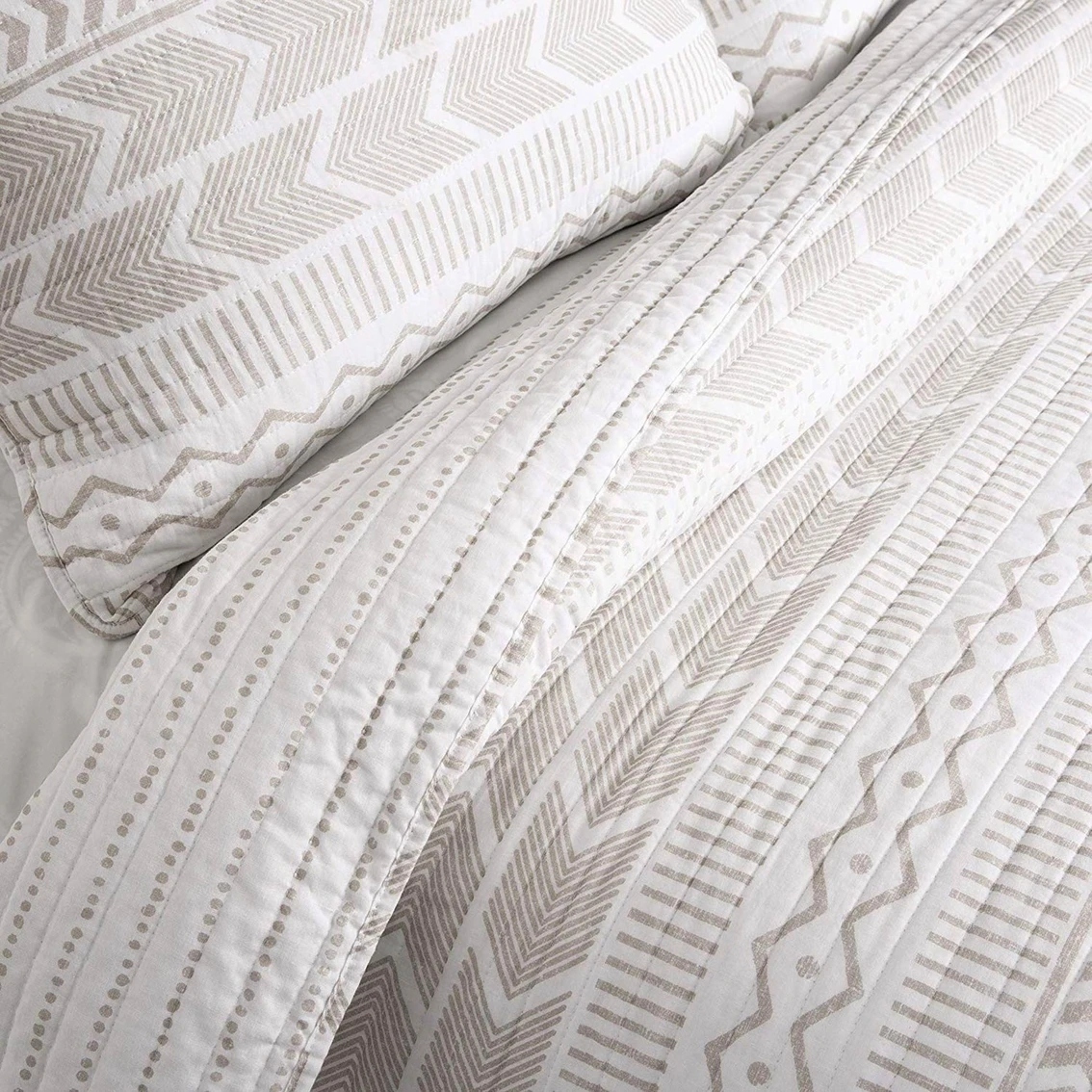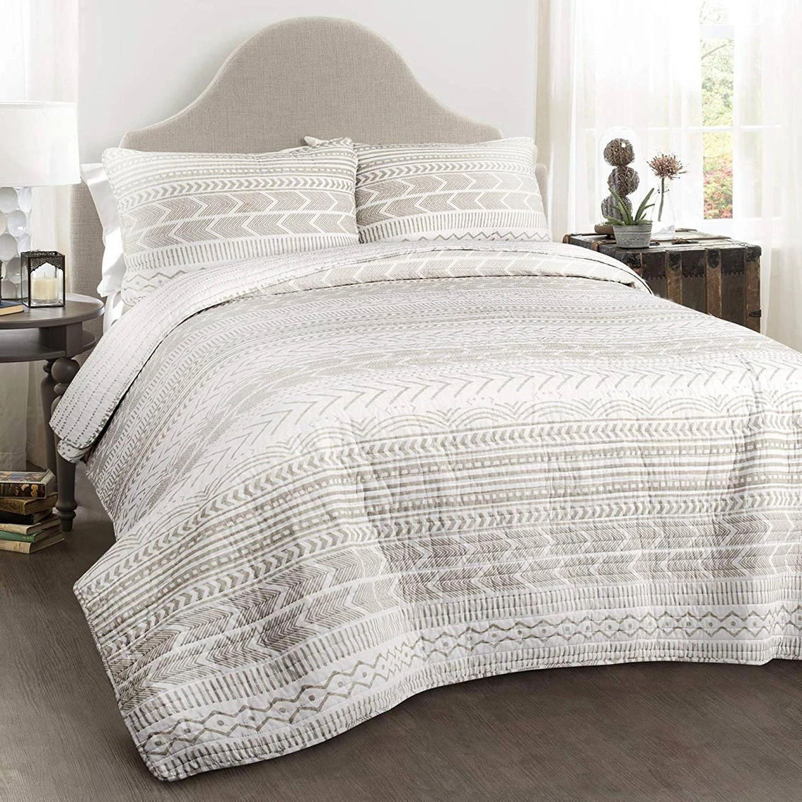 Add Scandinavian style to your home with this reversible quilt set from Lush Decor. It features stripes of various geometric patterns. Use this set to redecorate your master or guest bedroom. This 3-piece set includes a soft cotton quilt and two matching pillow shams.