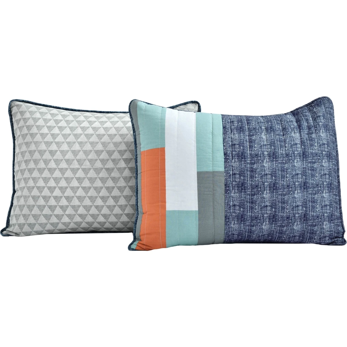 This reversible quilt from Lush Decor epitomizes the modern and contemporary style. The meticulously placed geometric shapes are each pieced together by hand with colors that radiate a charming tone, as the rest of the quilt is texture print. A must have for all homes. This set includes 1 quilt and 2 pillow shams. Style: 16T005437.