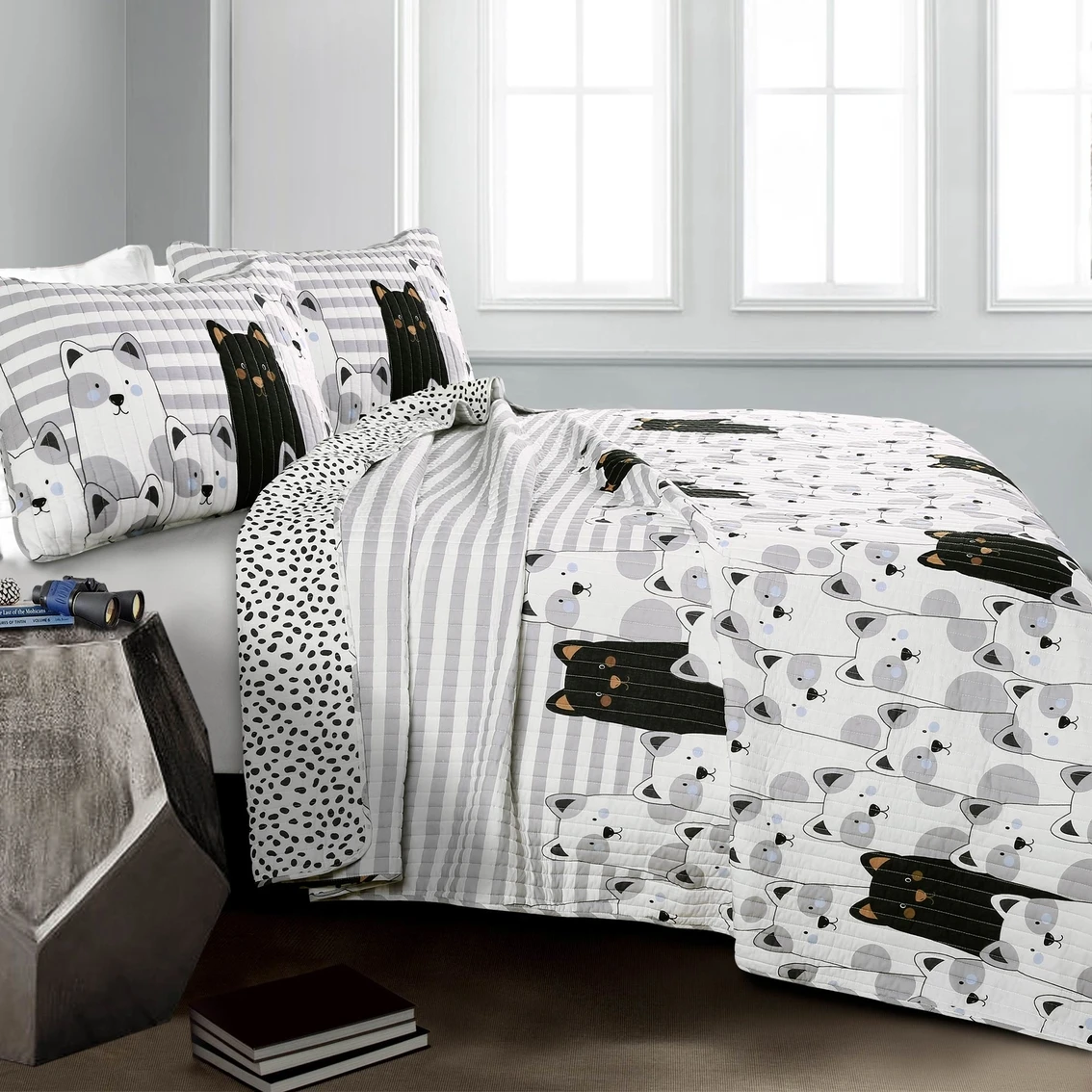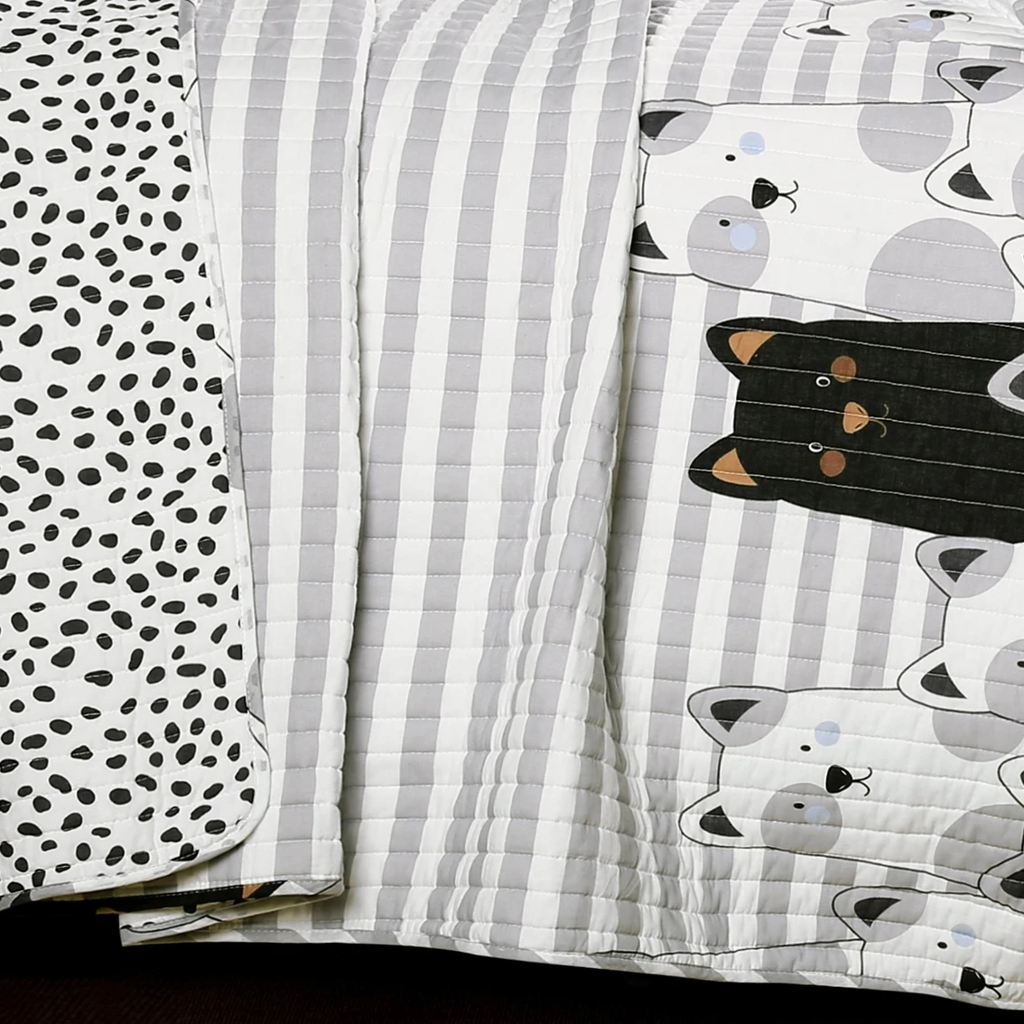 This two-piece quilt set features an adorable pattern of bears and thin pin stripes printed on 100% cotton. The set includes a reversible quilt and a matching sham, giving you two looks in one trendy set. Ideal for children, teens and young adults. Style: 16T003153.