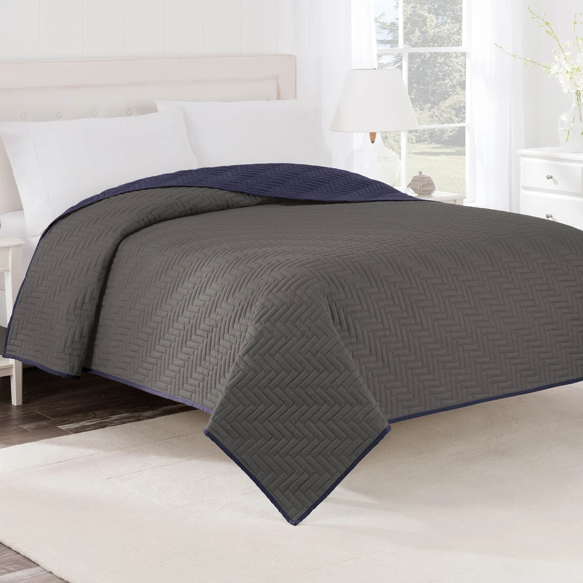 Looking to change things up? Switching your bedding is a cinch with this Reversible Quilted Coverlet from Martex. Crafted of polyester with polyester fill, this coverlet features an intricate woven quilt stitch detailing, square corner trim and a reverse color binding.