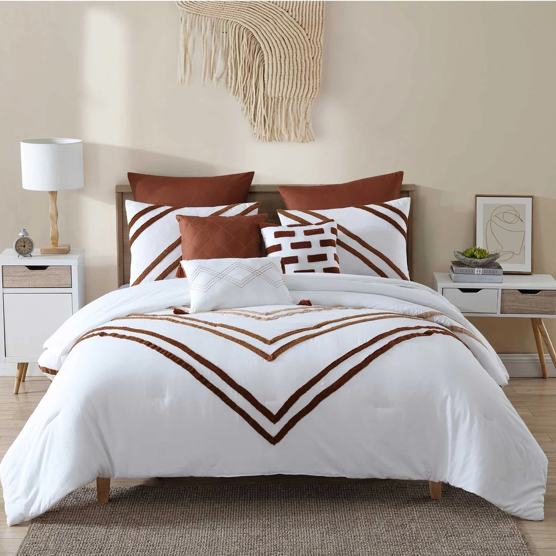 Indulge yourself in spa-like luxury with this Guilia Comforter Set by Modern Threads. The polyester filling gives just the right fluffiness to this comforter, while the textured and embellished details give a more formal finished look. Our luxuriously brushed microfiber material is constructed using techniques that include better stitching, stronger weaving, and softer materials; Ensuring a durable and soft touch. Fashion meets luxury with this set and is the perfect solution to your decorative and comfort needs.