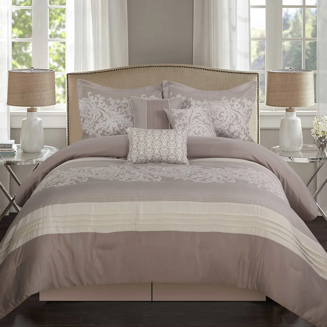 Add a touch of class to your bedroom with the Nanshing Margret 7 pc. Comforter Set. The luxurious comforter and shams flaunt a gorgeous engineered design with piecing on ground that adds dimension to the lavish look. Model: Margret7/size.