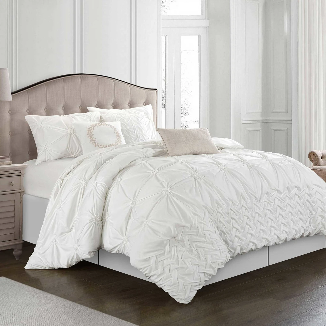 | Includes | Set Includes: (1) Comforter, (2) Shams, (1) Bedskirt, (3) Decorative Pillows |