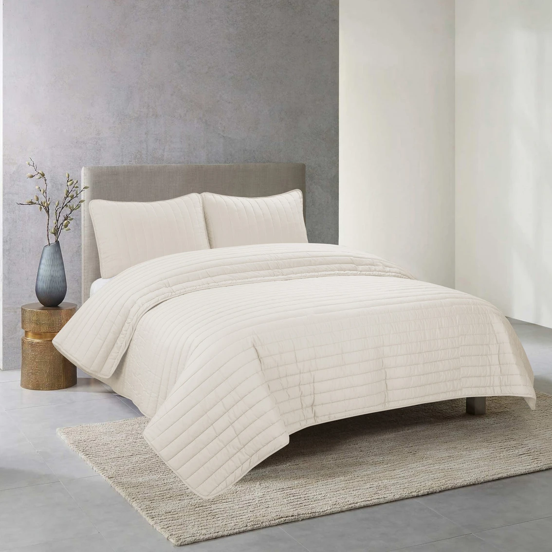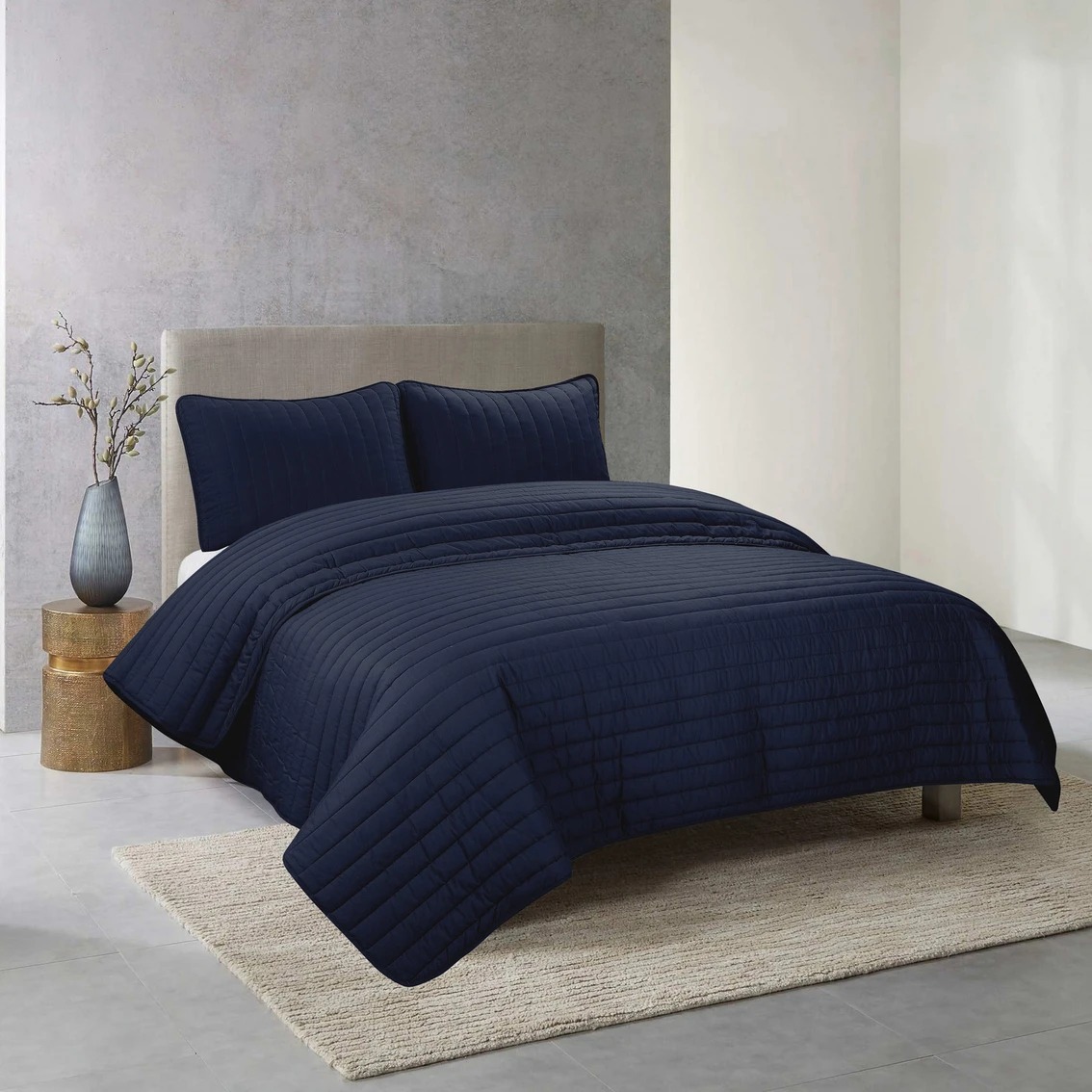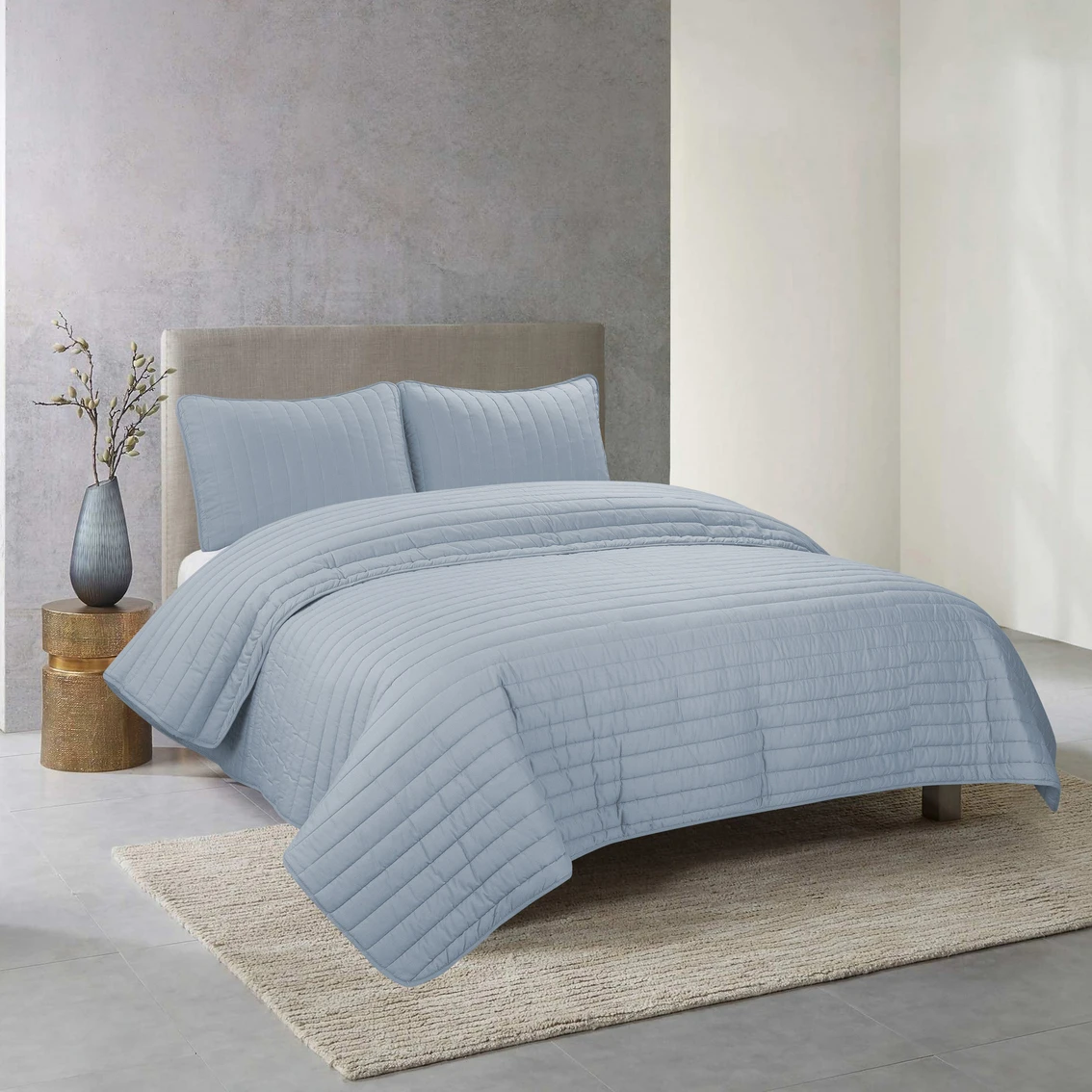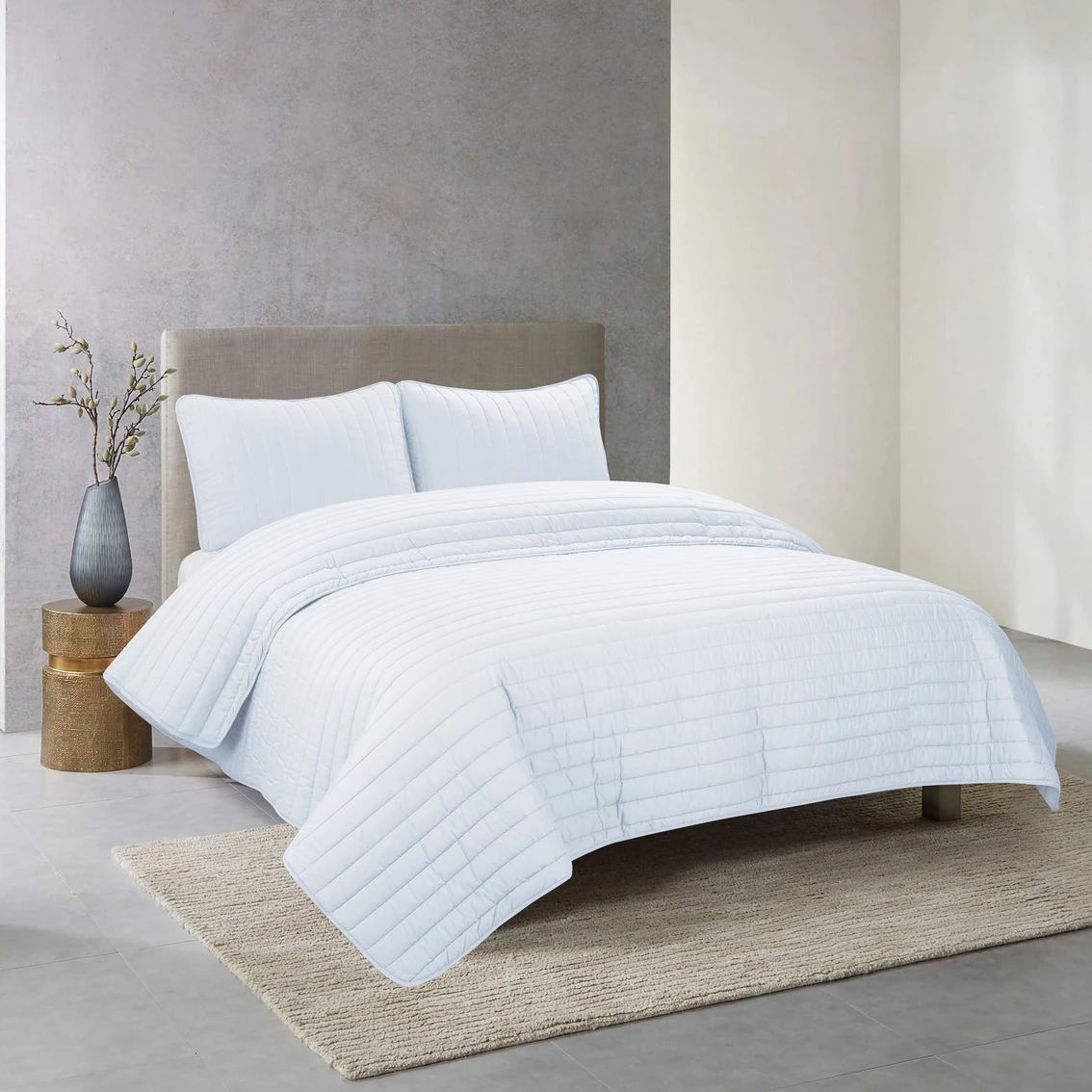 Upgrade your room with the Perfectly Cotton Quilt Set by Nouvelle Home. This 100% cotton, solid color collection provides you an easy solution for decorating any bedroom. The quilt filled with 100% hypoallergenic polyester for soft, lightweight warmth, and the horizontal, channel-stitched cotton fabric offers a cozy, smooth texture. All items in the Perfectly Cotton Collection are designed with easy care in mind and are machine washable. Model: QSNH0.