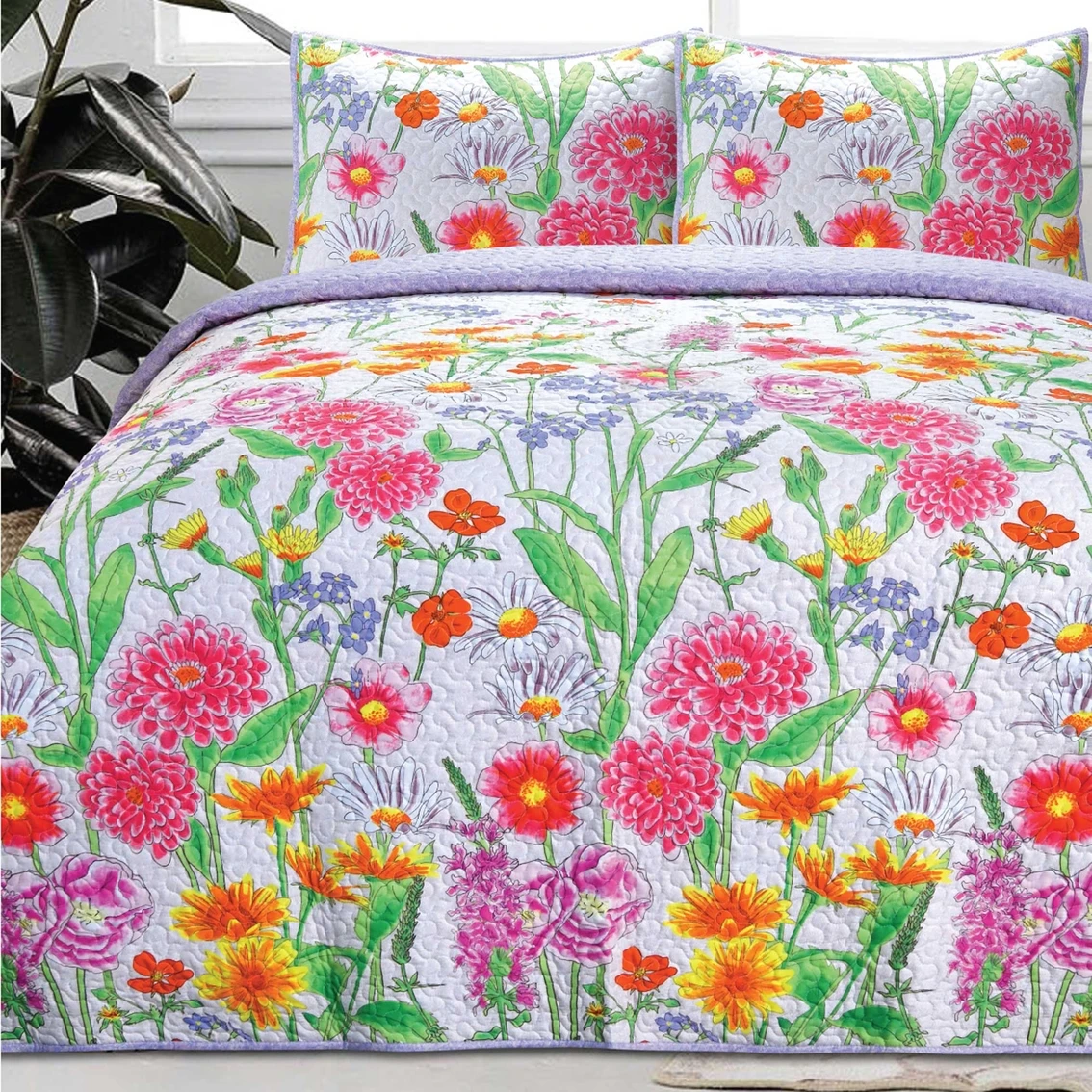 Embellish your room with this beautiful quilt set from Pieridae. Made from ultra-soft 100% premium brushed microfiber and 100% polyester filling, this bedding set is extremely soft and warm, making it an ideal choice for the season. Perfect quilt for summer or warmer weather. Offering the soft and cozy touch you need to get a good night’s sleep, give your bedroom a fresh look with this quilt set featuring chic printed pattern in rich colors. So, whether you’re looking to relax under your covers with a good book or simply doze off for the night, this quilt set is perfect for your needs. Machine washable, lightweight fabric. Wash cold on gentle cycle. Use non-chlorine bleach when needed. Tumble dry low, warm iron when needed. Model: MF87959.