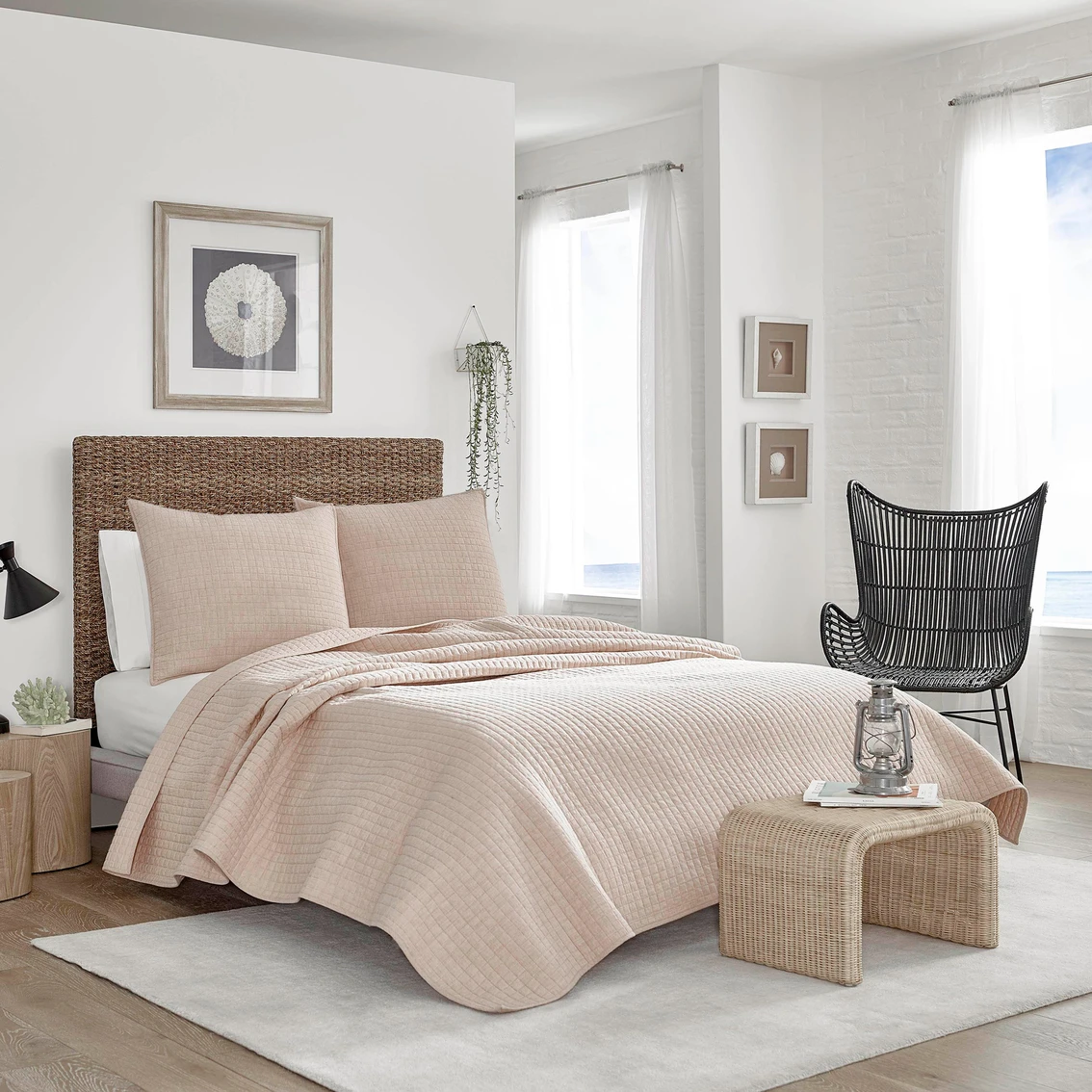 The Southern Tide Palmetto Dunes Quilt puts a classic spin and a fresh, light-coral accent on your bedding decor. Crafted of rich cotton and square quilted for a touch of texture, it’s the perfect piece for draping over your bed as a comfy and cozy layer, enhancing the casual, lived-in look of your space. Inspired by some of the most beautiful elements in the world, the Southern Tide Palmetto Dunes Quilt offers craftsmanship, clean lines and fine quality. Available in Twin, Full/Queen and King sizes, it pairs perfectly with the Southern Tide Palmetto Dunes Euro Pillow Sham (sold separately). With Southern Tide, the South is more than just a location, it’s a state of mind. The brand is all about the classic American lifestyle and it always brings a piece of the South wherever it goes. The premier Southern label appeals to those with an adventurous spirit, an affection for the coast, and an appreciation for classic design. 100% cotton,100% cotton fill. Machine wash, dryer safe. Model: 1C39044.