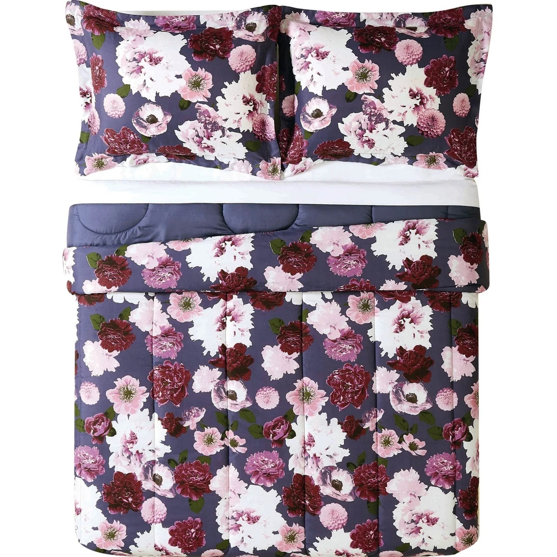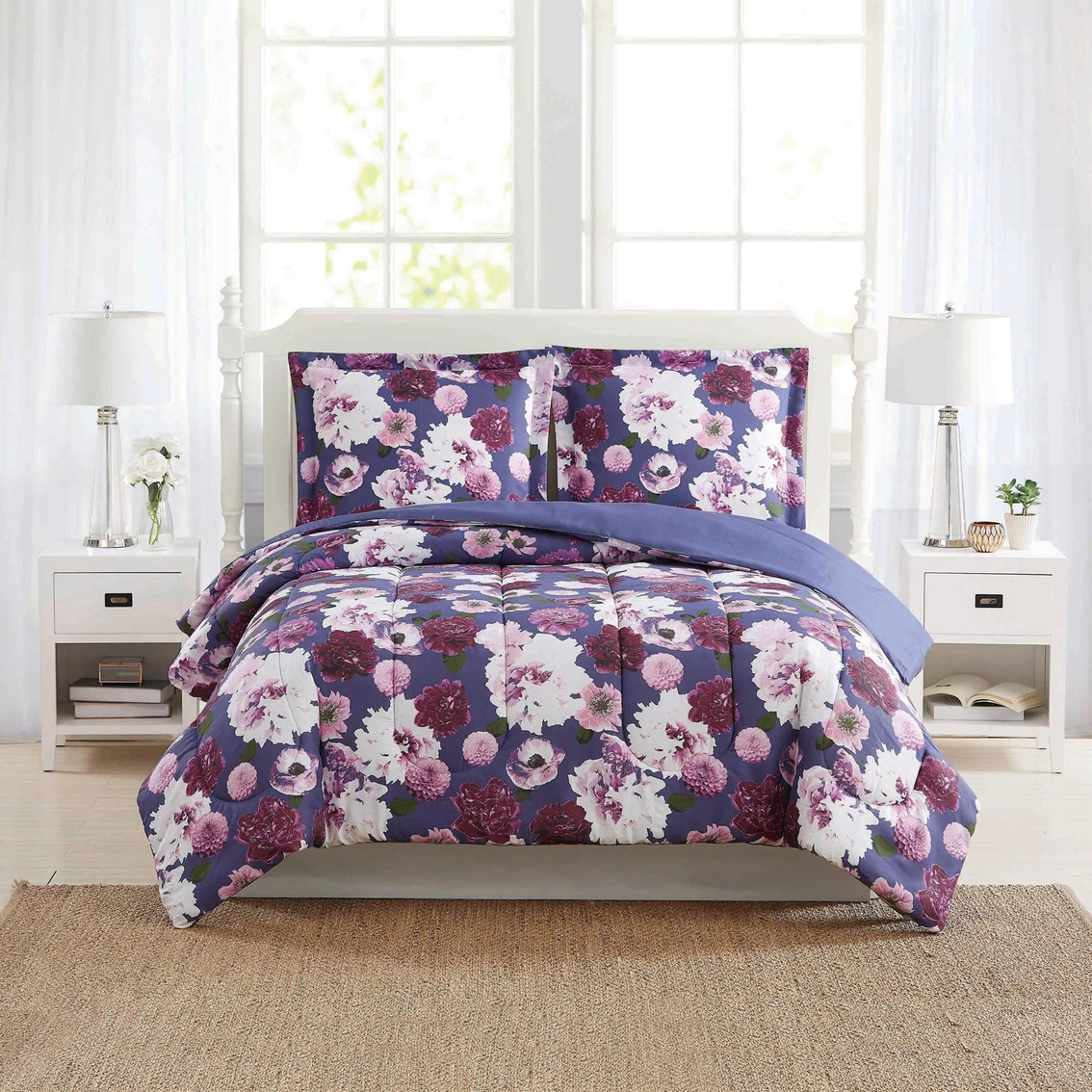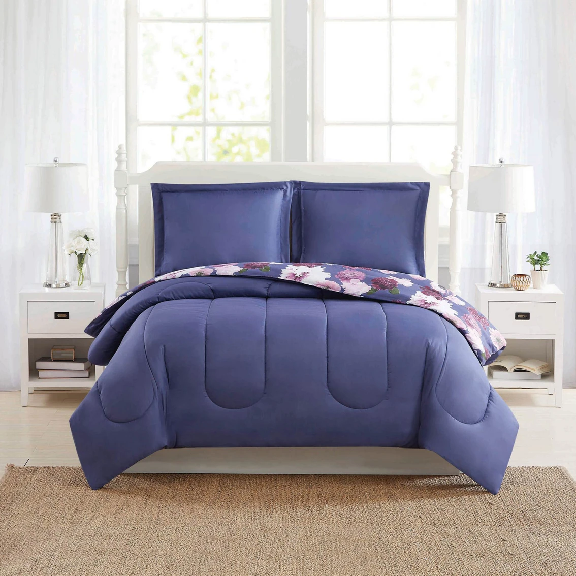 Refresh any bedroom’s decor with the Bloom comforter set from Style 212. This set features a vibrant multicolored floral pattern that reverses to a solid purple. The set includes one comforter and a pillow sham. Style: CS3315TW-1540.