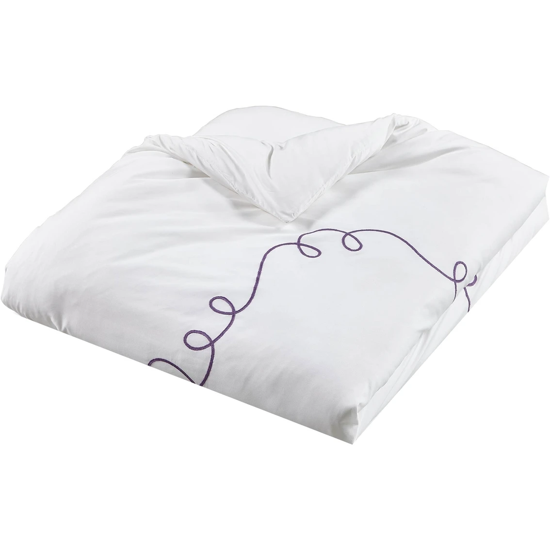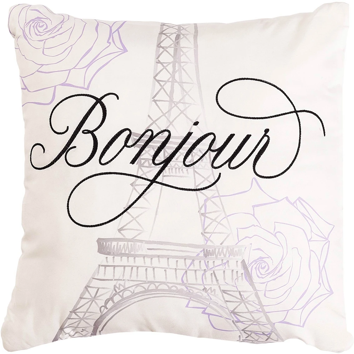 Loop embroidery in purple. Reversible to a solid ivory color. Pillow shams coordinate with top of bed. Square throw pillow features the Eiffel Tower. Made of 100% Polyester. 100% Polyester filling, Machine washable.