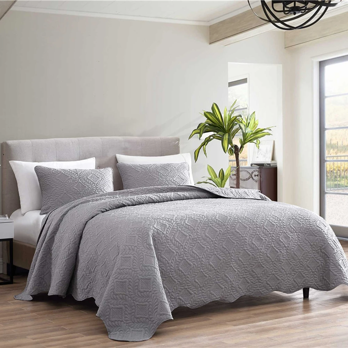 The Nesting Company Ivy 3-piece bedspread set achieves timeless beauty. Elaborately embellished with exquisite details the set is carefully crafted to add a classic touch to your bedroom and enhance décor. The bedpread is constructed from super-soft microfiber fabric for a year round comforter. This set is machine washable for easy care. The set includes 1 scalloped edge bedspread and 2 pillow shams. Style: 90038.