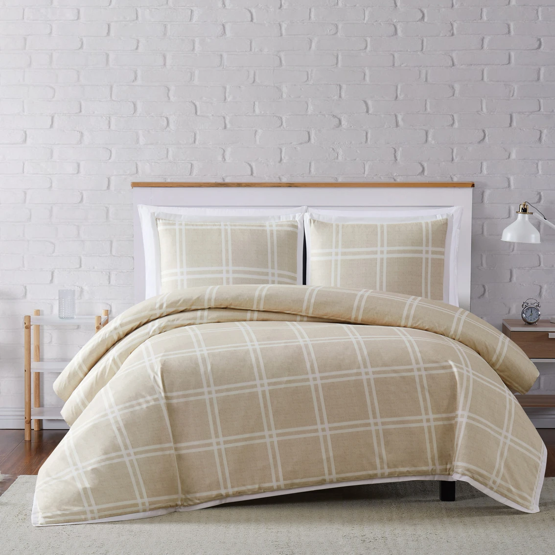 This easy to coordinate large scale window pane print is a great coordinate to a modern room or a simple coordinate to finish a bedroom. Includes: one duvet cover and standard sham(s) with button closure. Face and back is 100% microfiber. This item is machine washable, but please be sure to use appropriate sized machinery to avoid any excess wear on the items. This item is manufactured and imported from China. Style: DCS3068.