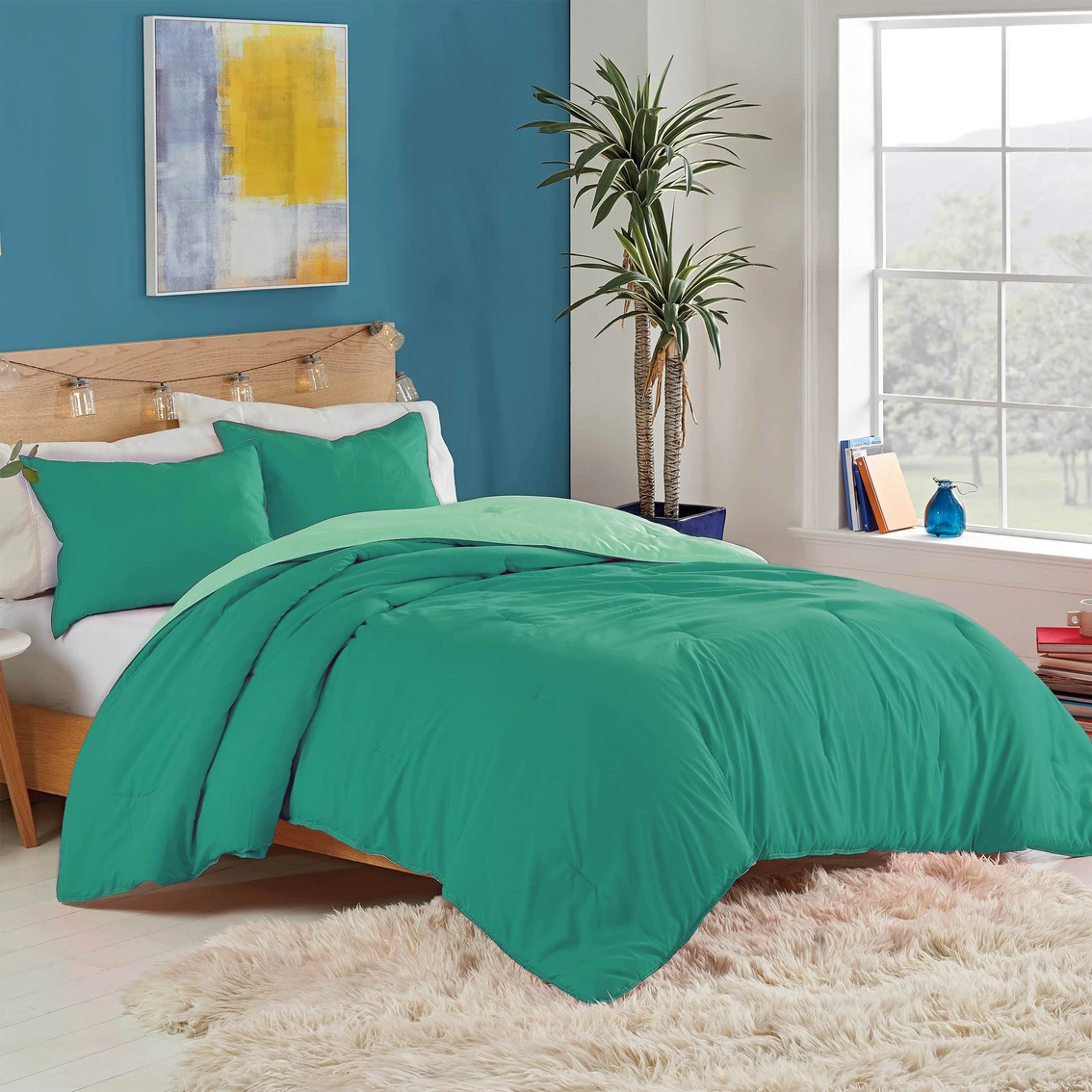 TWO LOOKS, ONE BED – These reversible comforters feature two shades in the same color family